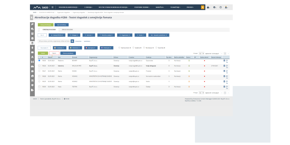 Pregled in upravljanje akreditacij, tako stalnih, kot tistih vezanih na posamičen dogodek.
